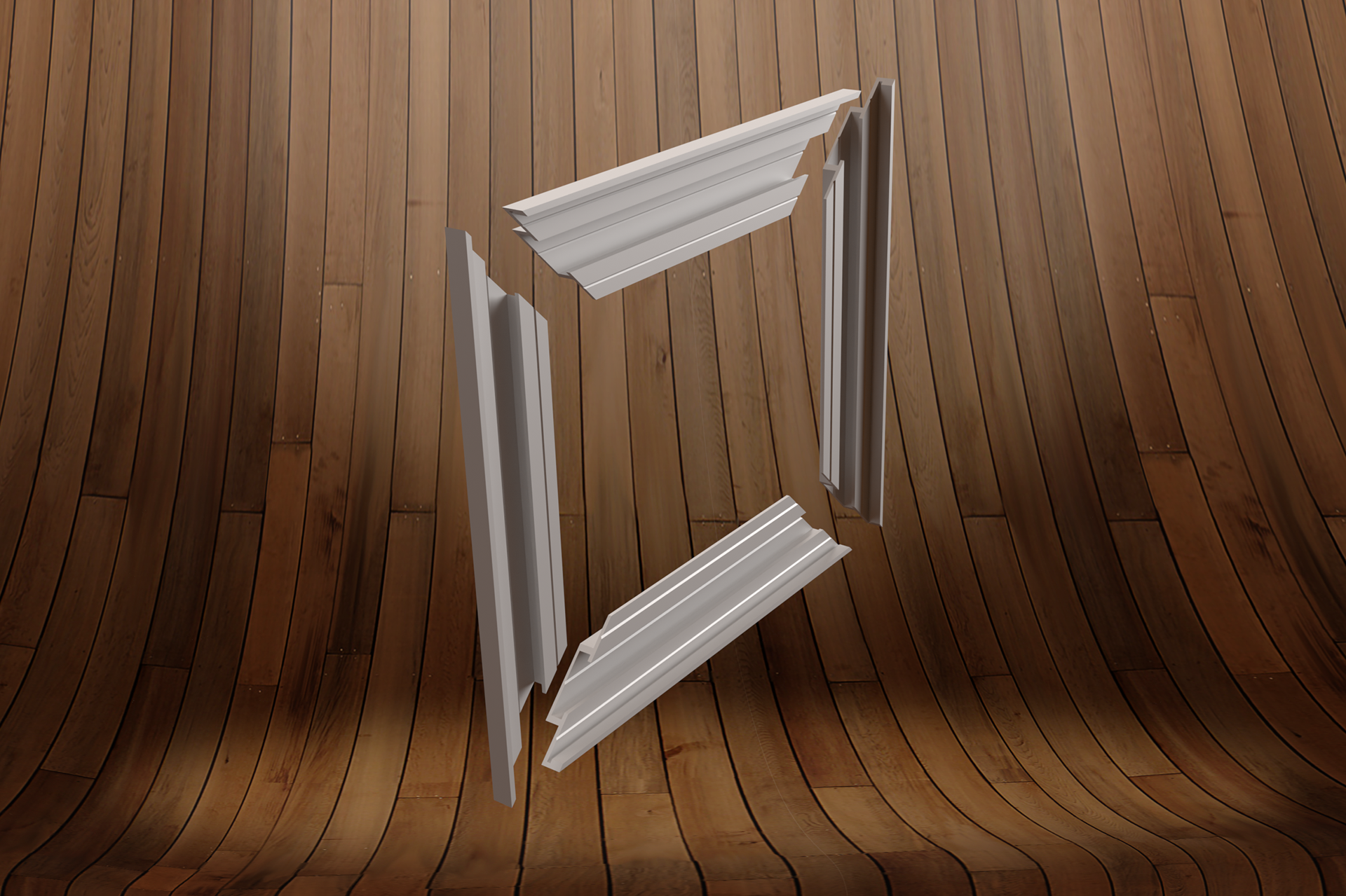 Modern en strak frame samengesteld uit geanodiseerd aluminium kaderprofiel. Het Z-vormige profiel heeft een boord van 2,5 mm met een opstaande rand van 6 mm. Dit in combinatie met de dieperliggende 5 mm waardoor een zwevend effect wordt gecreëerd.